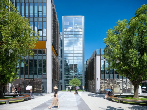 以“城市客厅”理念为核心,罗杰斯史达克哈伯建筑咨询公司(RSHP)的总体规划在多个层面促进协作与交流。16 栋建筑通过三层的高架空中连廊相连,连廊上设有景观花园,并配备灵活办公空间。商业空间可划分为开放式、单元式或混合式办公单元,同时,现场的地铁站和公交站为周边住宅区提供了便捷的通勤条件。