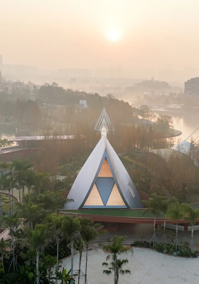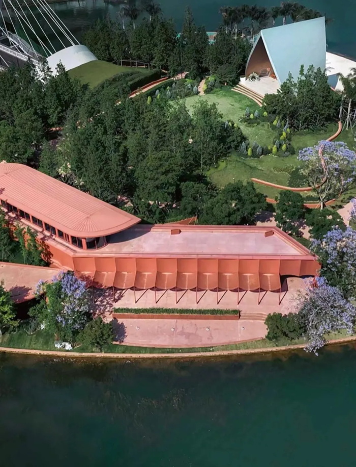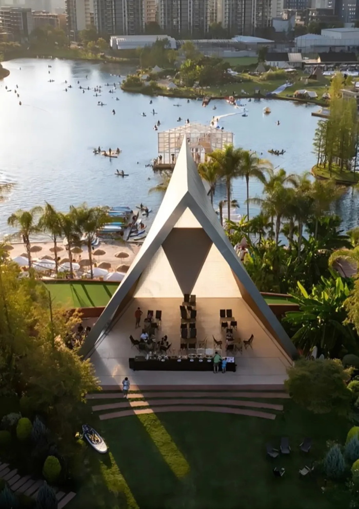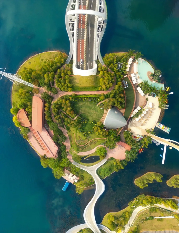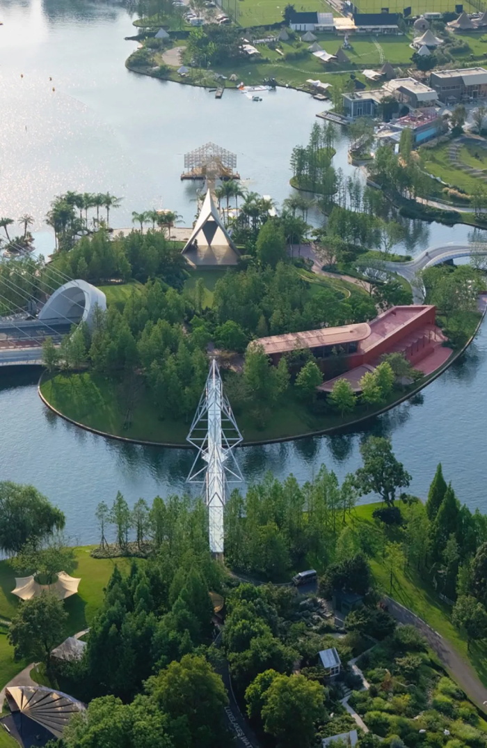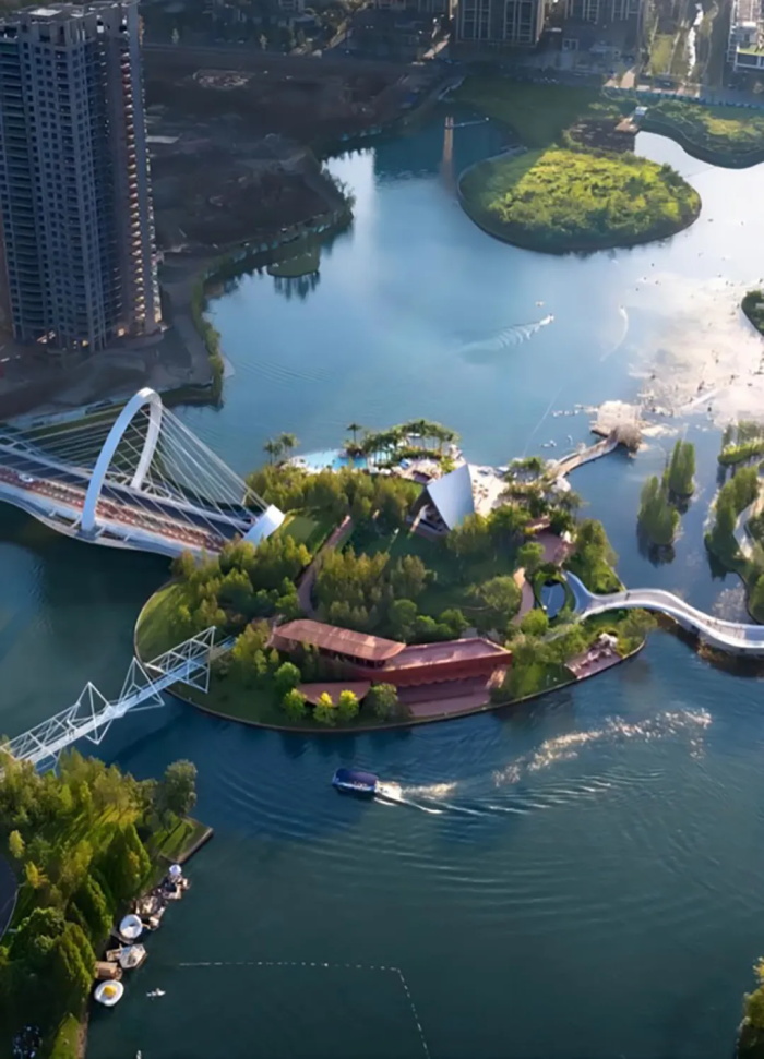 伊甸岛的轮廓无限接近于一个爱心符号,一眼望去,很难不让人联想到与爱情相关的字眼。问DeepSeek如何理解爱情,它答:“当我们谈论爱情时,其实是在谈论自己——我们的渴望、恐惧,以及与他人建立联结的永恒努力。”这颗摇荡在成都麓湖之上的爱心亦然,身处麓湖水城的核心区域,向麓湖的四面八方用力一掷,桥与路便如动脉一般,链接起麓坊中心、海浪公园、麓客岛等其他社区组团。
