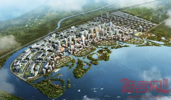 3A2设计所设计的中国——东盟北斗科技城融合黄石江北山水基底,构筑“水街—绿岛—绿楔”的生态框架模式,形成“策湖长江,青山碧水;绿楔水景渗城,三大功能区通过景观相互融合”的空间意象。