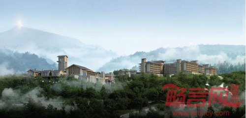 酒店设计及开发始终遵循原生态、高品质、国际化的开发理念,建筑外墙采用原木、毛石、砂岩等生态材料,整个酒店外观与环境融为一体,浑然天成。