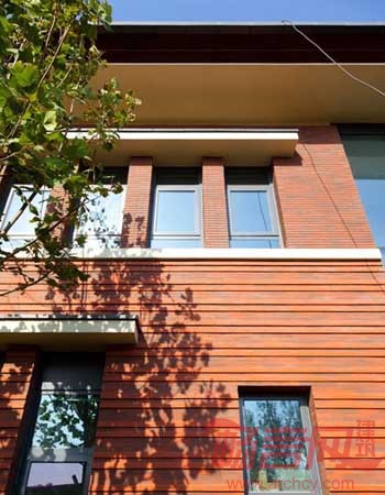 “每一种材料有自己的语言……每一种材料有自己的故事。”售楼中心尊重天然材料的特质,选用了天然感较强的红砖、文化石、锈板、以及室外防腐木作为主要装饰材料,富有原始风貌的材质体现出崇尚自然、尊重环境的理念。