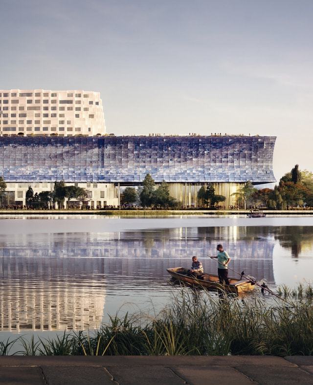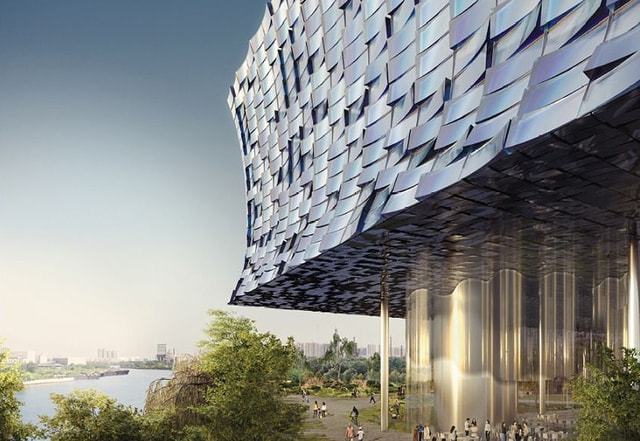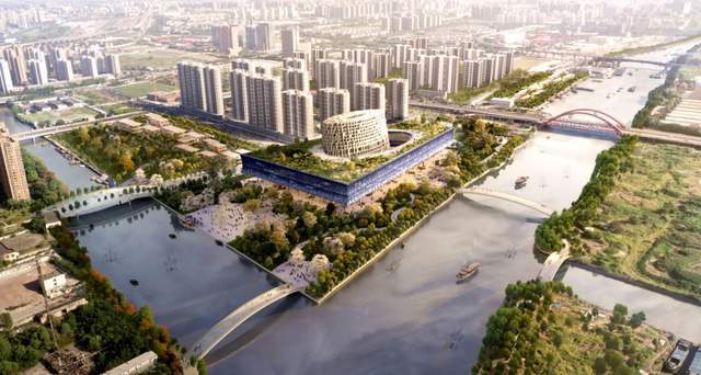 项目建筑方案由“鸟巢”的设计团队——赫尔佐格和德默隆事务所操刀,其灵感源于大运河水道,采用“悬停笔触”的概念,在大运河之上打造出一个悬浮的博物馆,书写着新城市人文景观的起点。