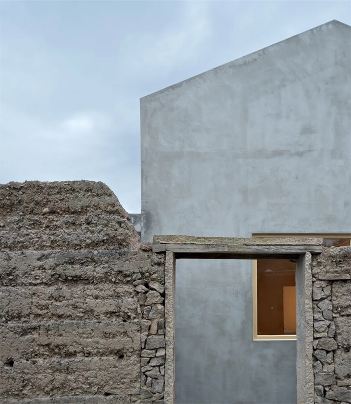 王户村村民之家通过空间模式和建造模式对传统民居的转译,将历史记忆赋予到建筑中,来延续原有的原型。整体的坡屋顶条形体块置于现有老墙内,让村民之家从老墙中自然“生长”出来。新建筑和老墙交相辉映,显隐互鉴。