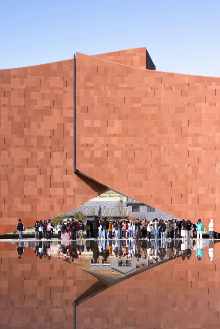 群山环抱的麦积山一峰独秀,断崖之上自前秦以来石窟开凿的历史述说着施主的笃信和工匠的虔诚,遗留下的是佛教雕塑艺术精湛的旷世杰作。麦积山游客中心以红砂岩的外表、循环往复的态势、光影变幻的空间、丰富翔实的展示,建立起连接过去与未来的桥梁。