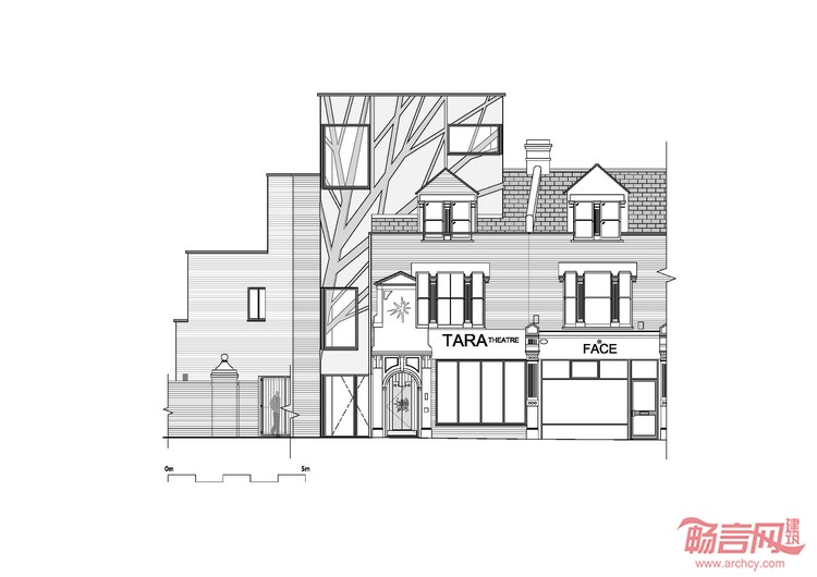剧院的设计融合东方元素,致敬其在管理和产权方的亚洲渊源,并突显Tara剧院在英国剧院行业独一无二的特质。设计还融入了在印度被视为“生命之树”的菩提树图案,树木下的荫凉也象征着社区的凝聚。这一“Tara之树”围绕于建筑立面,并以英国传统工艺抹塑,巧妙呼应着印度装饰技术。菩提树图案仿佛在邀请观众走进剧院聆听并分享他们的故事,这一独特的外观亦打造出一座生动的城市地标。