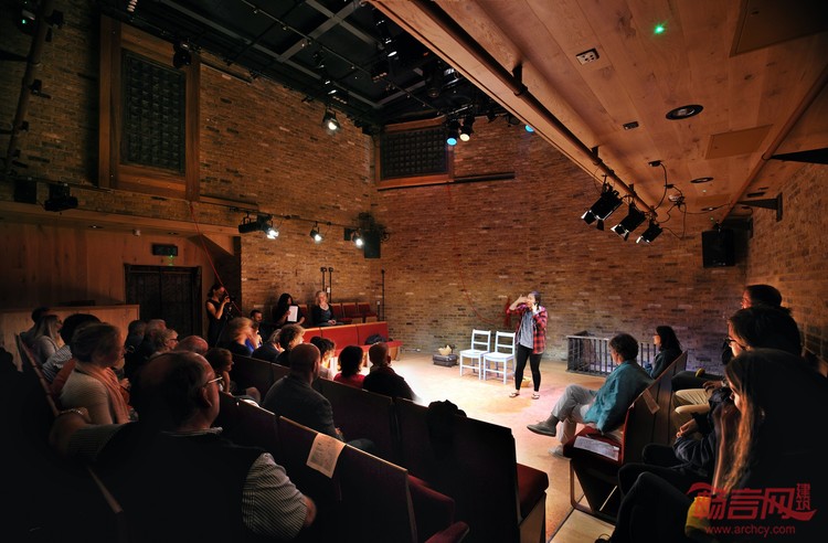 新剧院所用的砖块中有7,500块回收自旧剧院,建筑材料也尽可能就地取材。外立面的“Tara之树”有96%的材料来自回收废料。内部空间自然光照充足通透,宽敞明亮,并装有彩色百叶窗。从高层窗户透过的光线可以为正厅提供日照,这样的设计颇为独到罕见。