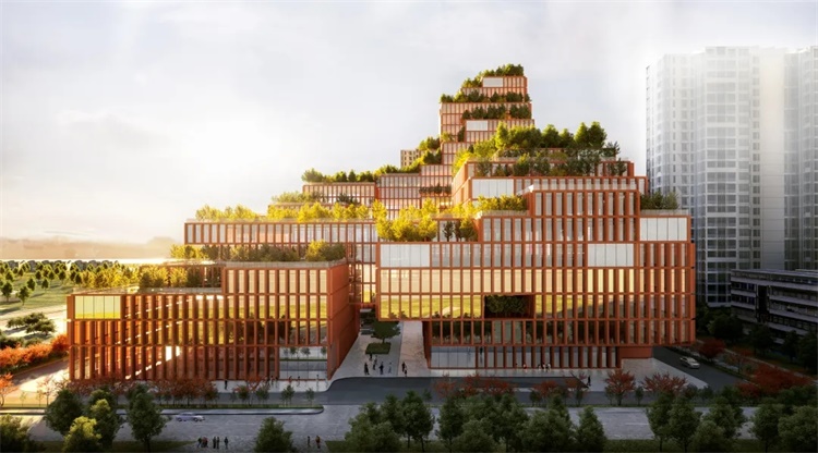 西安现代科技体验中心项目的屋顶设有空中花园。该花园将是公园的延续,形成一个露台系统,让游客可以爬上建筑,获得周围城市景观的新视角。台阶和绿色露台将成为科技馆文化活动计划的一个组成部分——不同的区域将举办放映、活动、表演,为市民提供独特的户外公共空间。同时,空中花园的绿化设计包括银杏、枫槭、白皮松等六种主要树种,十二种灌木和十二种多年生草本植物。