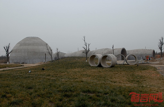 博物馆与农村砖窑的不同在于,农村起拱的直径是不变的,而我设计的是一个变径长拱。砖拱厚49厘米,每49厘米一道,一端对齐,另一端沿长轴变径。砖拱的最大跨度10米,最小3.6米。这样两条长72米的变形“长虫”就出现了。