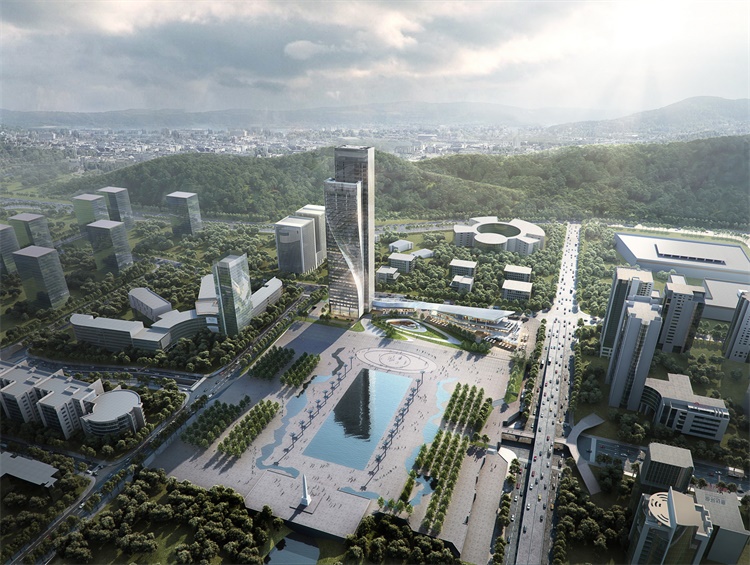 在建筑布局上,设计充分考虑到周围环境以及建筑体量,让超高层塔楼退让至商业零售裙楼左侧,既避免了对地块东北侧照母山上揽星塔的视觉遮挡,又消减了对城市中轴线的高度压迫,同时也创造出了更多市民户外活动空间。项目以其标志性的建筑轮廓,和为城市提供的重要公共活动空间,将成为重庆极具辨识度的新地标。