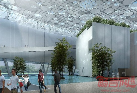 在中庭设计上,针对热负荷、玻璃外墙朝向等不同模拟结果,确立低造价低能耗的平衡式设计方案,在无热增量的前提下,自然日照使用提升50%,通过智慧型屋顶完成低造价高品质的设计。微气候调节则是通过建筑内部绿植、水系的设置,在创造自然风貌景观的同时,利于室内环境调节,做到形式与内容的和谐统一。
