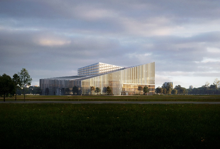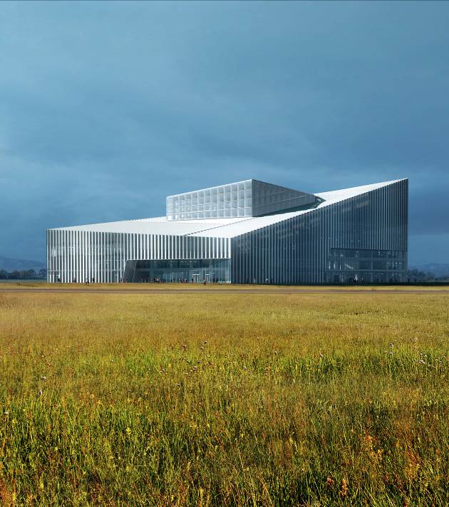 项目位于呼和浩特伊利现代智慧健康谷中轴西侧,与伊利总部共同构成片区的中轴门户,东侧紧邻城市绿地,南侧面向中央公园,地理位置和景观资源优越。设计需在有限的地块内,容纳包括实验室、办公空间、多功能厅、中试车间及展示空间在内的多元空间,并根据员工、政府、专家、游客的不同需求,规划设计参观流线,确保各功能相对独立互不干扰。