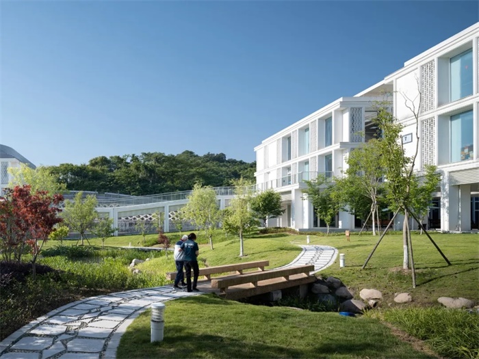 对特殊人群的关怀程度暗示着一个文明发展的高度。千载之前的安乐坊虽已远逝,但其所含的人初性善却荡漾着清澈的涟漪。一个楼层就是一个小街道,一幢楼房就像一个小社区。杭州市社会第一福利院以人文关怀为轴,处处体现人性化设计,完成一场跨越时空的对谈。“玉者,美石也。”筑山水之境哺润玉石之心,每一刻黄昏落日之时,每个人都能遥见归属于自我的人性之光。