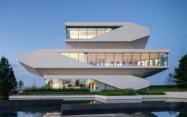 面对大连独特的“山海连城”格局——海中有山,山中有城,边缘保留完整山海界面。设计以“叠石”这一行为原型作为意象基础,利用三块石头堆叠、挤压、碰撞所产生的力学张力,转化为建筑的视觉与空间张力,构成三层体量:一层抬高2米,设置为这一片区所服务的社区会客厅、城市展厅等开放界面;二层为游泳、健身等为邻近社区居民提供运动主题配套,并分别通过立面洞口的几何框景向海岸线不同朝向,打开视野;三层为咖啡、酒吧和餐饮等休闲社交业态,并通过体量的错动所形成的屋顶露台设置了观海的外摆空间。