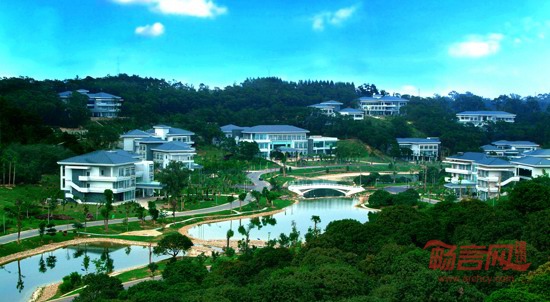 荔园山庄按现代理念建造,拥有21栋别墅楼,楼内有豪华套房、豪华标准间等舒适的各类客房共378间(套),辅以高尔夫球场、健身房、游泳池和会务中心等设施,能够满足顾客不同需求。山庄山峦起伏、丛林郁葱、自然景观生态基础良好。设计师充分利用基地山体连绵起伏、落差较大、植被浓郁的自然优势,通过规划、景观设计与建筑设计重新整合场地山形、水体、叠石、植被等自然资源,恰如其分地把20多幢建筑以带状湖区为中心,“大珠小珠落玉盘”分散点式地布置于丛林之中、湖水之滨。建筑的组合不拘泥于陈规定式,充分适应山形地势,和谐地融汇于自然环境。以期达到“建筑之意在于山水之间,建筑艺术也就是山水之术。