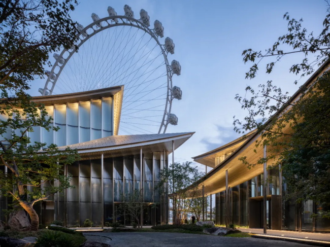 规整的城市肌理与自然蜿蜒的湖岸肌理在美术馆的用地处交汇,同时也是多条城市视线通廊的焦点。丹麦 BIG 建筑事务所充分利用紧贴水岸的绝佳地理优势,基于对苏州园林中“廊”、“亭”、“院”等元素的现代诠释,以分散体量沟通城市视线通廊,在城市与滨水之间,构建了一座“无边界的美术馆”。建筑布局与城市街道成一定夹角,自然形成不同尺度的户外开放空间。通透的有顶廊道引导访客在美术馆场域自由穿行,直至金鸡湖水岸并嵌入环湖滨水开放空间系统之中,带领观众踏上一场城市、自然与水域交融的艺术旅程。