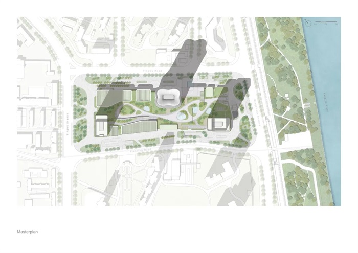 近期,武汉世茂锦绣长江D2b地块城市综合体项目建设中的实施设计方案公布了,该项目于2020年夏天在汉阳滨江举行了奠基仪式,是武汉在疫情后重启的最重要的大型城市综合发展计划之一。基地位于武汉市汉阳区一线滨江区域,毗邻武汉标志性的鹦鹉洲长江大桥,与城市中心区武昌隔江相望。建筑师从基地的城市环境切入,通过对周边城市关系及物流铁路工业遗存等边界条件进行梳理,旨在打造一个高密度环境下的城市新节点,以回应武汉的城市脉络,优化城市空间结构系统,激发城市公共空间的活力。
