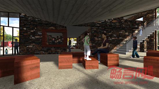客舍周围自然景观以及人文景观丰富,采用分散的体量的设计,在呼应藏地住宅单体较小传统的同时,使人在建筑内部仍然能够无障碍地体验外部的优美景色。建筑底部的高台是历史的呼应,也是抵御河水上涨的保护。剧场房顶拟帐篷之态,贴近当地文化传统。建筑材料就地取材,以河道里丰富的鹅卵石做基座支撑整个毛石的建筑,正是从视觉结构上隐喻了的一种山河关系。