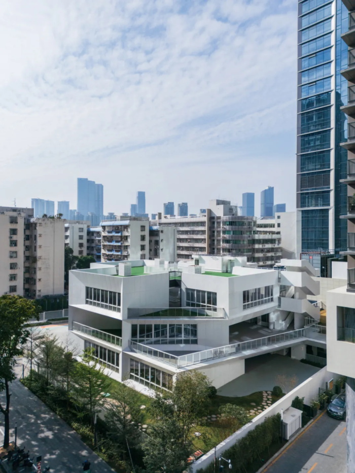 项目位于深圳市福田区高尔夫球场南侧一个超高层项目用地的转角处。建设用地非常紧张,把基本的功能落进去就没有太多余地了。虽然这个幼儿园空间狭小,但我们还是希望给孩子们创造一个简单有趣的空间。
