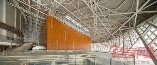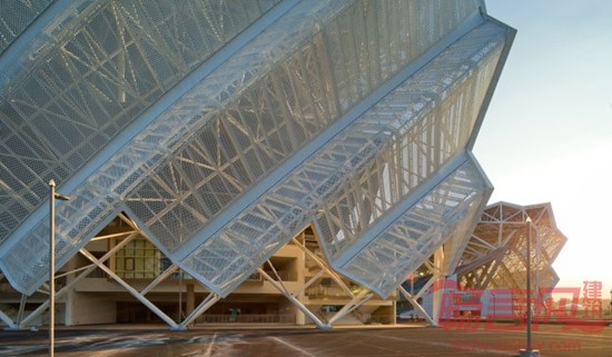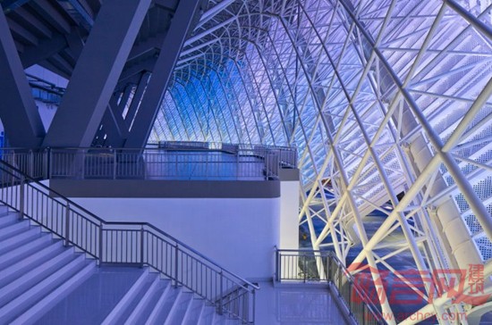结构是成就建筑之美的重要因素,尤其对于大型的体育场,全部可见的钢结构体系是其不可或缺的组成部分,是建筑师需要充分考虑的建筑表现元素。为了使造型与结构完美拟合,这座体育场创新的采用了双向斜交斜放空间桁架折板结构体系,这是在已知的体育场建筑内的第一次应用。