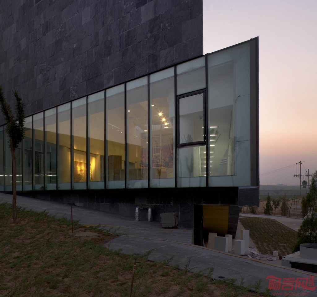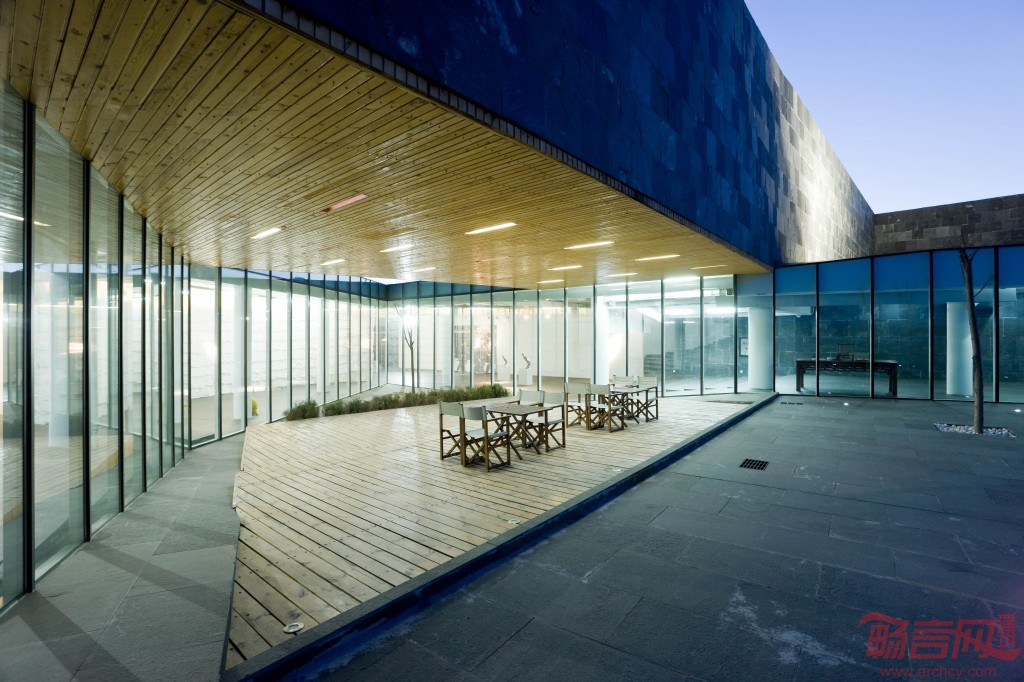 沿路结合景观,空间和地势,或以尽端点式玻璃幕远眺水库,或以侧墙连续玻璃引入院落风景,或以顶部开窗围合展览内容。