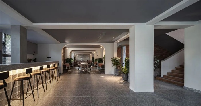 因此建筑师将更多的设计重心都放置在内部环境的改善与提升,而建筑外立面则只是作翻新、修复及加固处理,通过克制的设计手法去融入原建筑。尽可能的在维持它原有的建筑形态与风貌的同时,将室内使用机能全部进行重置与更新,以便满足民宿运营需求及符合当代人们生活与使用习惯。而为了让空间更具时代记忆感,整体室内空间上也植入了具有既定时代的工矿元素及材质。
