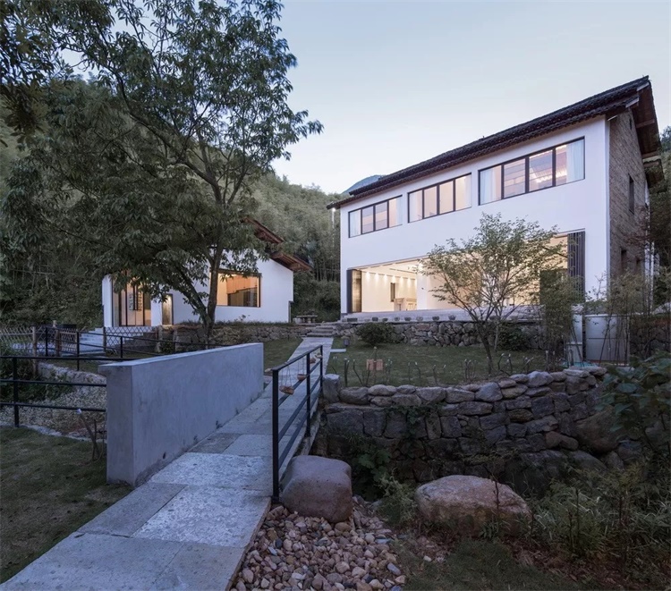 “枕山听泉”正如它的名字,房子主体背倚青山,旁边有清澈的泉水汩汩流淌,给人一种诗意盎然的感觉。