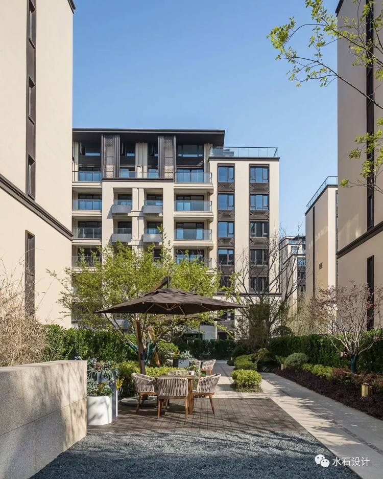 整个项目容积率1.88,建筑密度22.9%,利用拉高拍低最大化使用土地资源,利用建筑密度可以创造的别墅资源做到极限面宽最大化。在充分利用面宽的情况下,设计师仍在寻找更好的突围,通过多轮方案比较,最终选择全双拼别墅的形式。