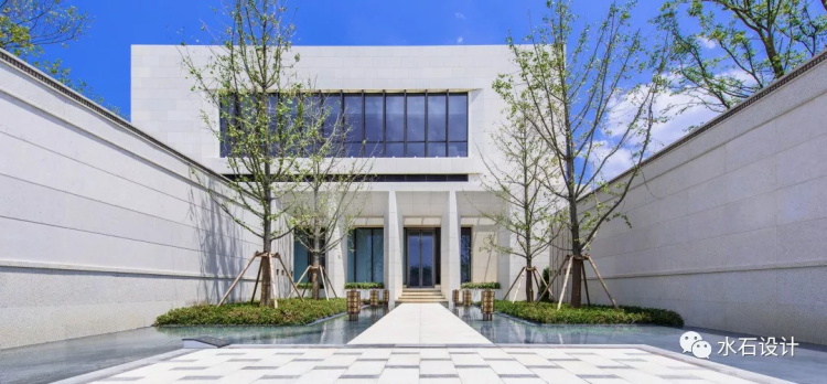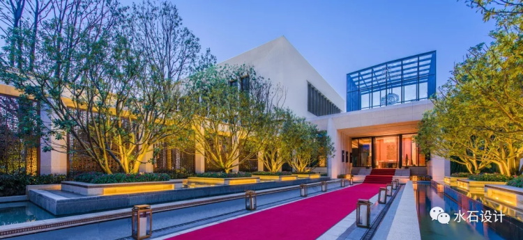示范区形体设计手法借鉴经典建筑,采用形体穿插咬合的手法,将玻璃盒子与实体基座穿插咬合,体现建筑美感。设计准确把握了建筑外立面各构件之间的尺度与比例关系。玻璃、金属与石材,一起组合而成新亚洲和谐典雅的风格。项目曾荣获2017年度地产设计大奖金奖。