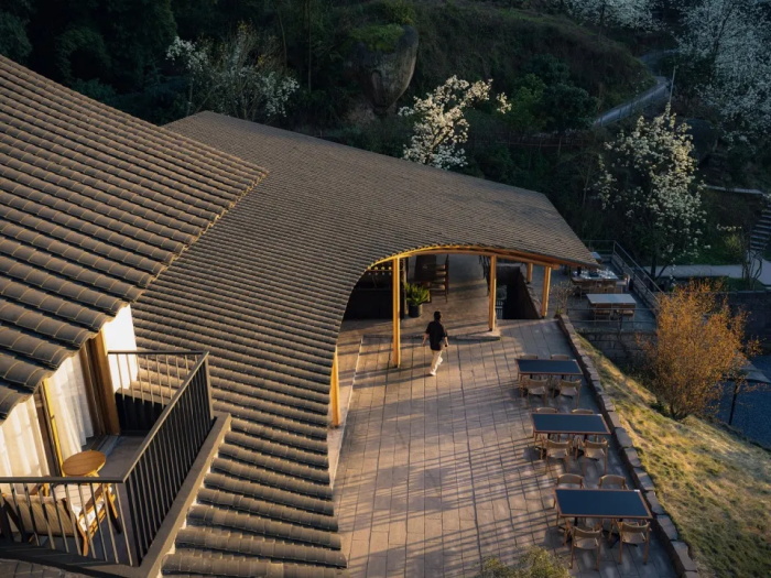 这是继泸州叙永·山岫民宿之后,小隐建筑在川南泸州打造的又一处山野度假作品。延续了小隐建筑一直以来乡野建筑营造的基调,低调内敛而又特立独行,适宜的融于山林之中。川南民居的现代演绎,汇集了传统川南民居的各种建筑特点,梨花瓣意象转化的点缀,将东方美学洒落在这片川南山野之中。山林、山花、雨雾、晚霞的浸润,赋予了不在山林诗意与灵气,在山野间演绎隐逸之美。