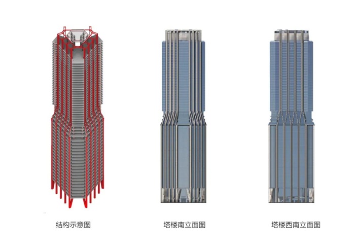 为使住宅业态获得良好的海景视野,塔楼整体平面呈切角三角形,满足进深、采光和通风等需求。住宅楼层平面转变为整体较下方三角形略小的“V“字形,异型的平面形式也是结构、消防及机电系统设计的难点所在。竖向构件无法上下贯通,从塔楼底部到塔顶,外框架柱数次采用“V“形斜撑进行位置转换,从而保证力流的连续性。