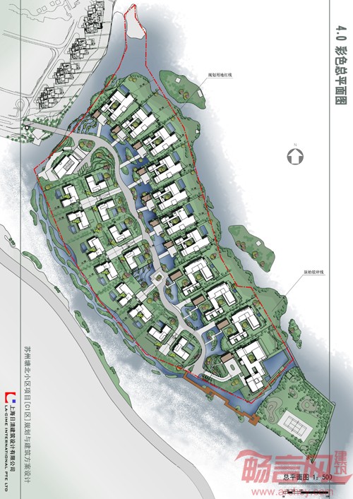基地四面环水,仅西北侧与陆地以一桥相接,东侧为独墅湖开阔的湖面,西侧与陆地隔水相望,拥有着得天独厚的景观资源,整个地块为南北向不规则的狭长地块。