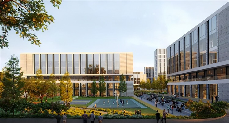 主建筑的轮廓鲜明灵动,围合成风格各不相同的公共广场、绿地和庭院,在园区内形成公园般的景致。