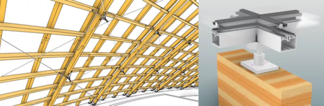 4、太原植物园展览温室项目中胶合木梁叠放节点、拼接节点、可调节支座节点、四角锥拉杆节点等均为创新节点并申报相关专利;