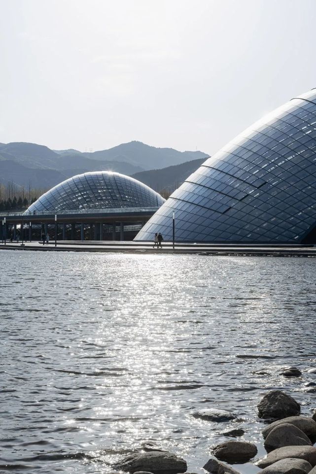 太原植物园位于太原市晋源区太山脚下,建筑群的核心部分为三座温室,外观为三个半圆穹隆,由木格栅制成,精确地嵌入在地形之中。温室的建造需要将能源设计、热力学、结构、幕墙、安装物流等相关领域的知识统合在一起。