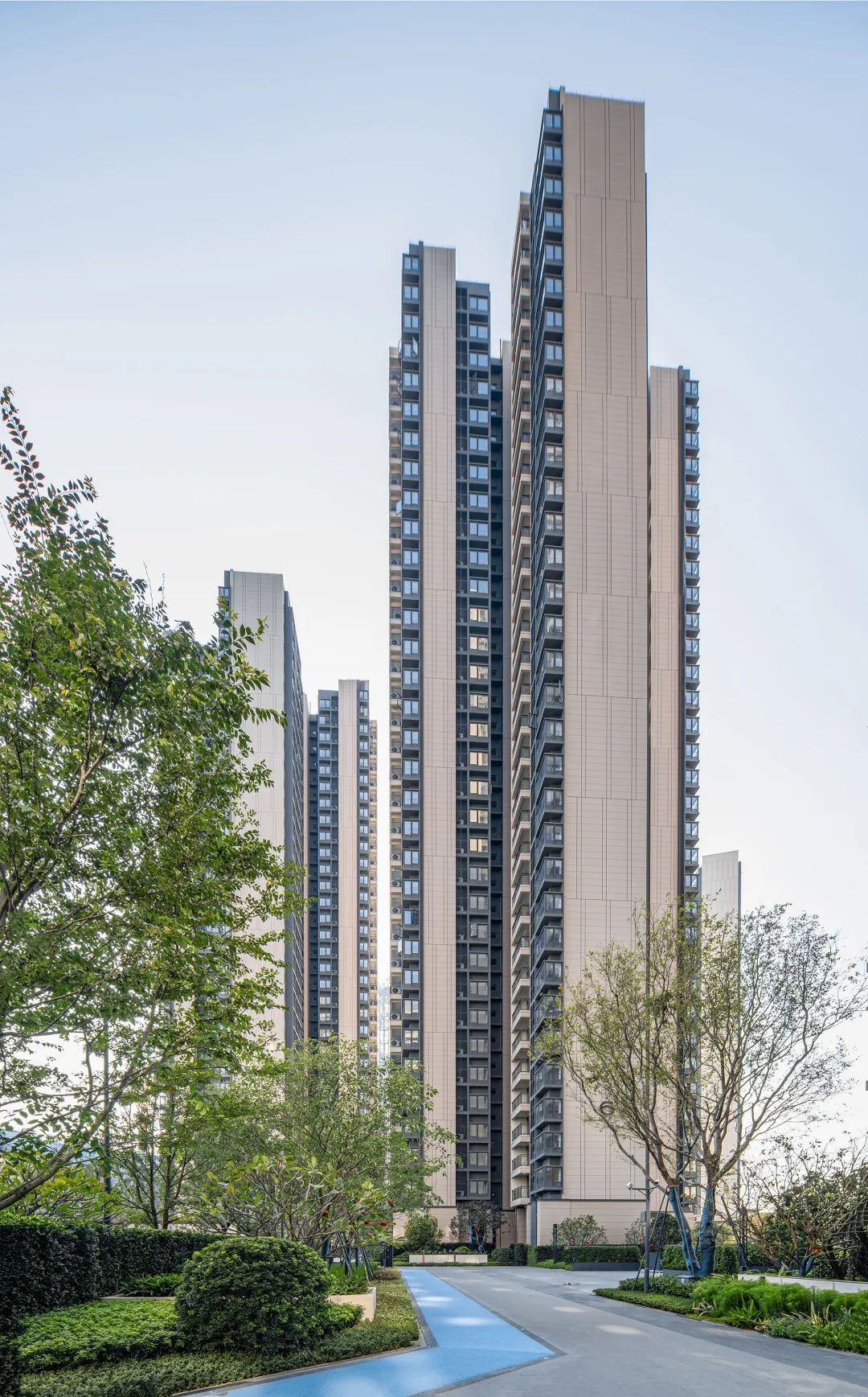 玺云著,是一个高容积率的新人居课题,“如何能让建筑不仅是孤立的个体,而是集合建筑、人与自然的绿色城市景观”,是我们在设计中贯穿始终的立足点。我们将所有塔楼在有限用地范围内最大化扩大楼间距,释放出南向开敞庭院以打造舒适怡人的中心大花园,这样,既能满足高得房率,又能将城市的绿意归还给市民,我们希望把我们的房子建造成人人都喜欢的景观,并且能让人们感受到城市的美好。