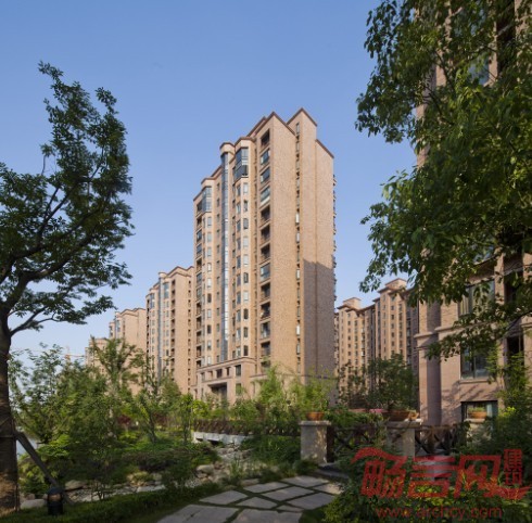 由于联排产品的引入,使高层区的容积率自然加高,既很好地改变了同一区位较为平均的城市天际线,又使高层间主要朝向栋距自然加大了,高层的组团空间异常开阔。