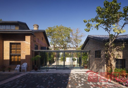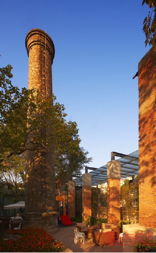 原先的大厂房体量巨大,完全保留会产生很大的压抑感,最终决定移除大厂房的旧顶及侧墙,保留了作为结构的大柱廊,减轻了对实现的影响。再结合厂区内的铁轨,吊车,炼钢炉等。既产生了强烈的历史厚重感,又保留厂区空间连续性。曾经巨大的吊装车被翻新,刷漆,留存;在铁轨的两旁,有摇曳的竹子,圆滑的鹅软石,等车的月台,迷宫树阵,儿童游乐场;而铁轨尽头则是一处极富热带风情的白色张拉膜遮盖下的泳池。整个展区以"留旧创新"作品展示为线索,给人以独特的空间体验。与这些时尚元素相伴的是裸露的厂房骨架,略显斑驳的红色砖墙,散发出经年的质朴美感的老照片,新旧材质对比之下,一个散发出时尚气息又极具历史韵味的建筑空间雀跃而生。