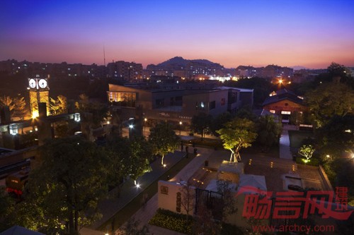 项目入口区原有建筑进行重点设计,将建筑桁架上生成,深色木百叶门,铜网,玫瑰钛框屏风,酒架等现代构件有机布局。并结合玻璃幕,金属百叶,金属穿孔板等能够强化空间的现代建筑元素。以一个整体的,富于细节的低层建筑群落让所有居民在进入本小区的一刹那享受久违了的休闲,宁静的居住氛围。