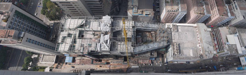 华强北是深圳最具活力的商业区,然而目前繁华的背后蕴藏着巨大的危机。人行、车行交通的混乱,配套基础设施不足,使华强北由单一的电子配套市场向多功能综合商业街区转化过程中,遇到了巨大障碍。本项目用地位于华强北背街,是在多栋高层建筑的夹缝之中的一个每日约二十万人穿越的基地。任务要求设计多层立体车库、商业、餐饮和旅馆等功能,更重要的是希望通过这座建筑重新梳理基地周边的人车交通系统,同时实现与周边的数栋商业建筑立体相联。这样极高密度的城市环境蕴藏着巨大能量。