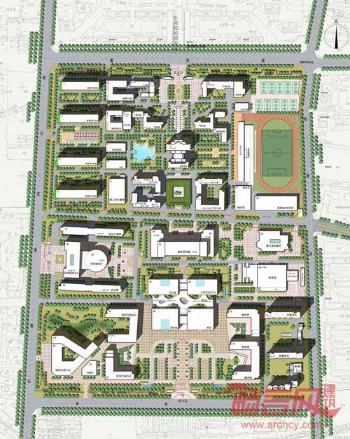 1、延续与加强老校区中轴线