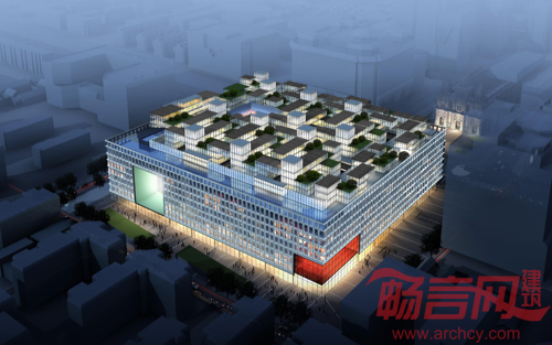 此理念基于运用项目任务书所需的零售、酒店、公寓总建筑面积建造总共5个立面,以形成内部共享空间。中空系统部分的轮廓为体块引入日光和与周围环境交流的视线。