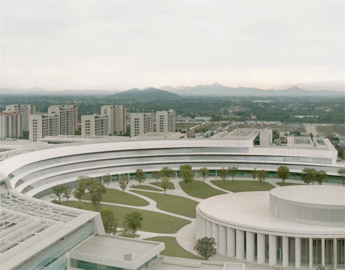 西湖大学的设计回应了不同规模体量的需求,大到城市规模级别的总体规划,小到独栋建筑。校园场地以一系列同心环为特色,分别为学术环、水环和生活环,这些同心环在实地和概念上将校园组织起来。