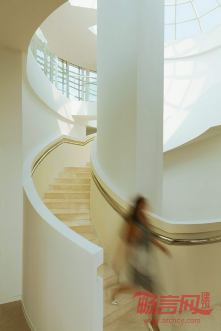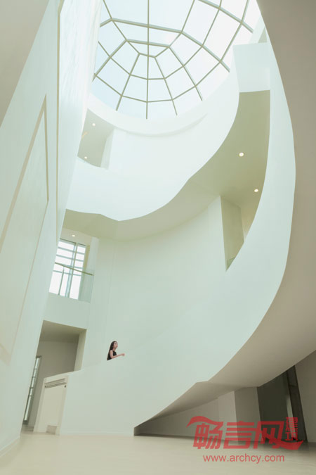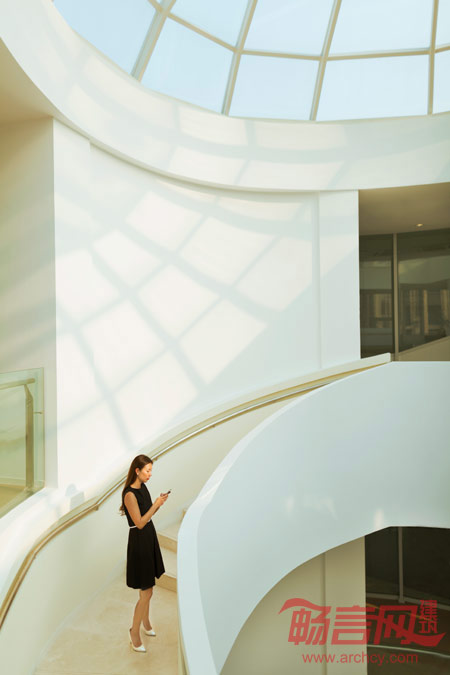 红色螺通道带领参观者从一层到达三层,整个过程可以观看到不同类型的样板间、体验未来商场商业环境及户外氛围。