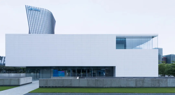 美的科学中心的选址极具深意,它坐落于美的新总部的核心位置,周边环绕着现代化的办公建筑,同时它与安藤忠雄设计的“和美术馆”仅一路之遥,因此如何处理和这位建筑大师作品的关系,也成为本建筑绕不过去的话题。