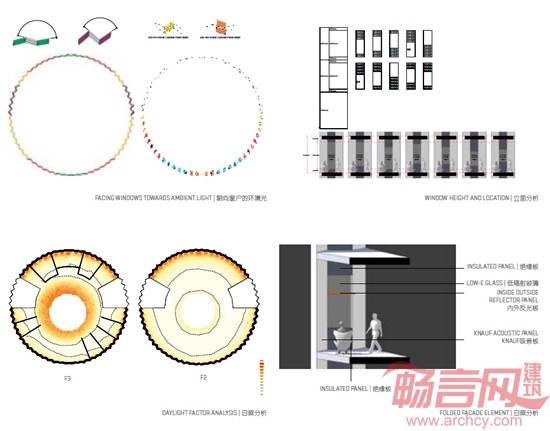 南京绿色灯塔设计原则一是尽量减少能耗,通过“智能设计”将能耗降到中国标准需求基准线的60%;二是尽量使用可再生能源,通过主动式设计和采用可再生能源,降低能源需求大约20%。而在可利用的能源上,光能无疑是能通过设计与技术达到低能耗的最佳选择,因此项目花在采光模拟计算上的时间,较之以往的任何建筑都要多出许多。