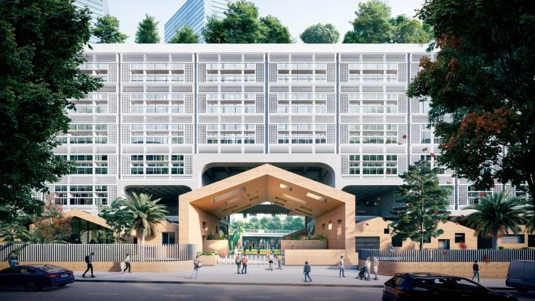 设计采取的空间策略是将莲塘小学与位于西侧和南侧的市政道路界面进行完整处理,以创造一个完善的城市界面。同时,将了较大密度和标准的普通教室和教学用房在这两个侧面,以修复和优化城市街墙和街道空间。