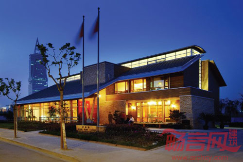 梦家园(中国)作为一个示范工程,除了有一个必备主要的产品展厅外,还将包括一些独户和多户住宅结构形式,内、外部装修材料以及一些非住宅建筑设备的展示。在整体布局上,建筑布置于近街的一侧,这样在基地沿河腾出大片花园绿地以作室外平台,绿化及展示花园木家具之用。停车位及卸货位位于基地的南侧。