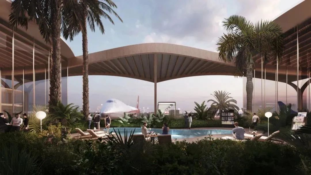 我们提出“凤凰森林”的设计概念,在楼前区域采用景观化手法处理场地、道路和建筑的关系,保留环境中的地形和榕树,打造与三亚自然环境结合的森林机场。最终形成基于商业和旅客服务的复合功能空间,以全新的热带雨林式场所体验吸引八方旅客。