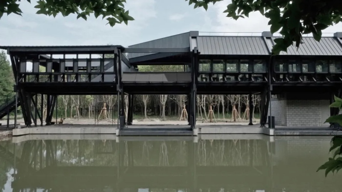 栋梁轩位于长江太仓段的“长江林场”中。场地充满各种限制与想象,让其中的栋梁轩成为特殊的案例。建筑师尝试在已经完成工业化的江南水网地区建构一套建造体系。它基于长三角实木集成材、预制装配和水循环利用等在地产业,也延续了江南传统的空间语言和榫卯工艺。在这个体系下,新的建筑形式和类型将会慢慢涌现,或许预示着水网地带建造的某种未来。