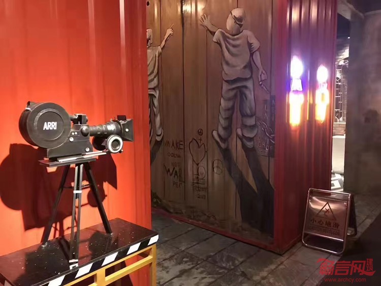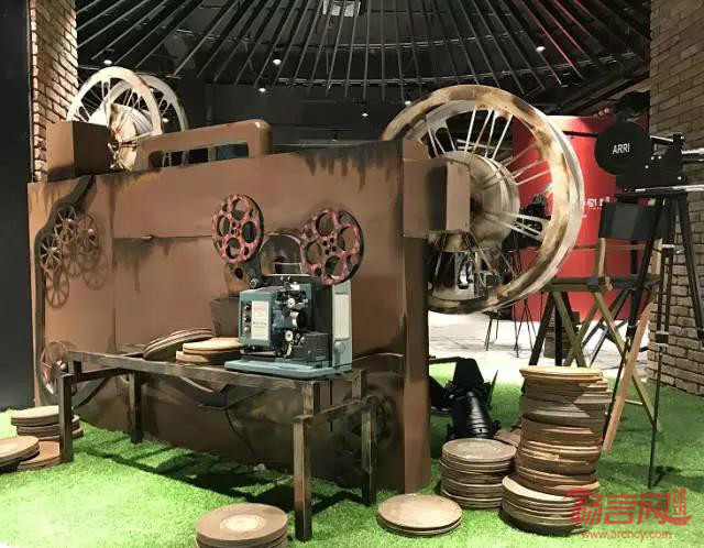 竟然是以电影、汽车、老长春为主题的情景式商街,除相关的几大主题区之外,商街内沿街的小品也都是与之配套的情节元素。电影场景区堆叠的老式电影构件,与斜对角的电影售票窗口相呼应,别具年代感,是摄影爱好者拍照取景的好去处。